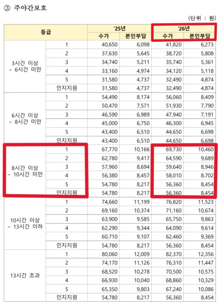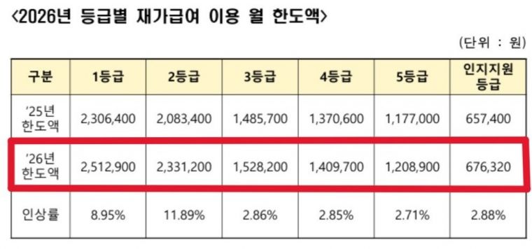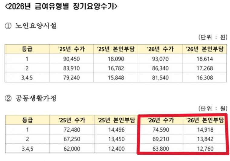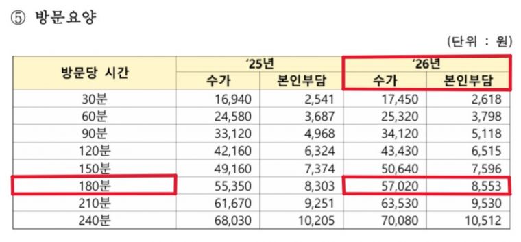 2026년 1월부터 장기요양 수가가 변동되었습니다. |